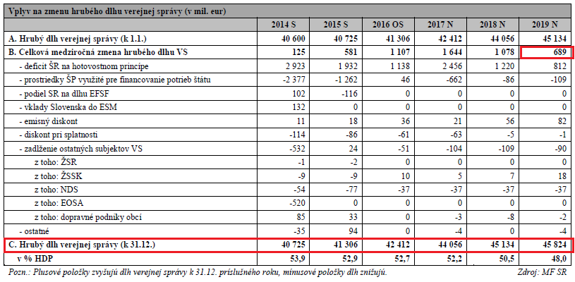 Podľa tohto dokumentu sa malo celkové zadlženie štátu počas vlády Fico3 každý rok zvyšovať, a ešte aj v roku 2019 malo narásť o 689 miliónov. Žiadne zastavenie, ako tlačil do hláv hlavný účtovník mafiánskeho štátu.