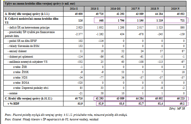 „Hrubý dlh na rok 2016 odhadujeme na úrovni 53,5 % HDP[3]. Dôvodom